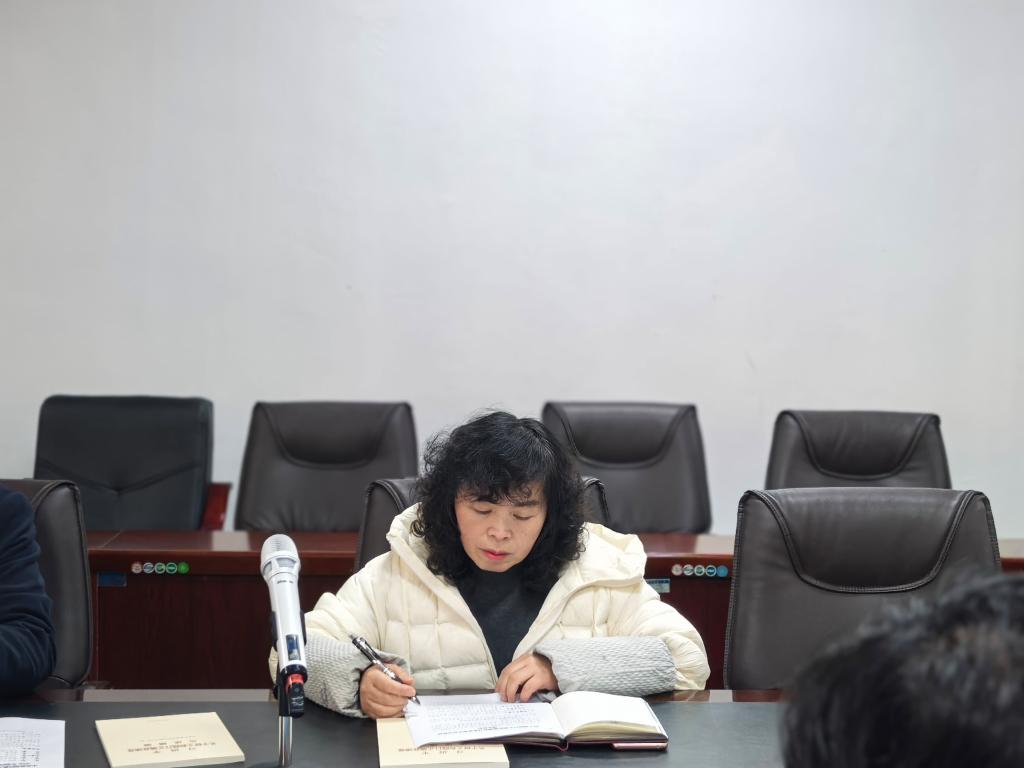 图为王红梅同志传达相关会议精神